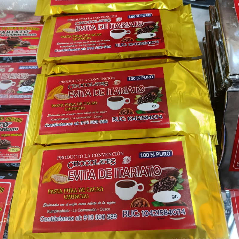 De este esfuerzo arraigado a la tierra surgió Chocolates Evita, un emprendimiento de Itariato, distrito de Kumpirushiato, en la provincia de La Convención, dedicado a transformar el cacao en productos artesanales de alta calidad. Más que un negocio, Chocolates Evita representa una historia de superación, identidad y pasión, que continúa creciendo con cada cosecha y cada producto elaborado.